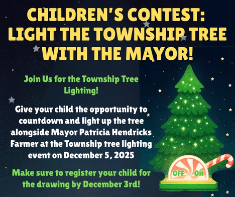 Enter for a chance for your child to help Mayor Patricia Hendricks Farmer, count down and officially light the Lawrence Township Tree at our annual Tree Lighting. The event is Friday, December 5 at the Municipal Building. The event runs from 6 to 8 pm and the tree lighting will take place at 6:30 pm.