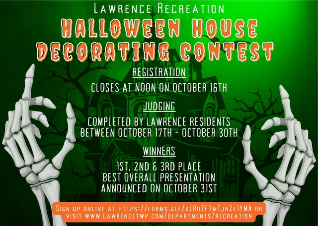 Whether your house is haunted and spooky, cute and whimsical, or just full of good old fall charm, we want to see your creativity shine in the Lawrence Recreation Halloween House Decorating Contest!